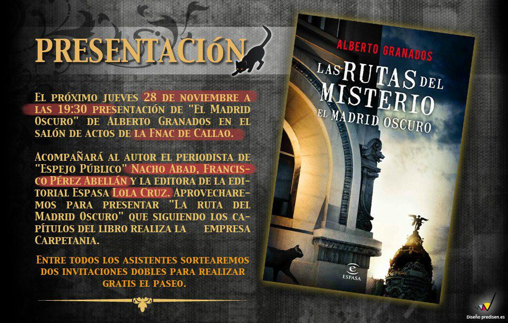 Retweeted SecretosdeMadrid (@SecretosdeMadri): Os recuerdo, hoy a las 19:3h en la @Fnac_Callao @albgranados presenta «EL MADRID OSCURO»